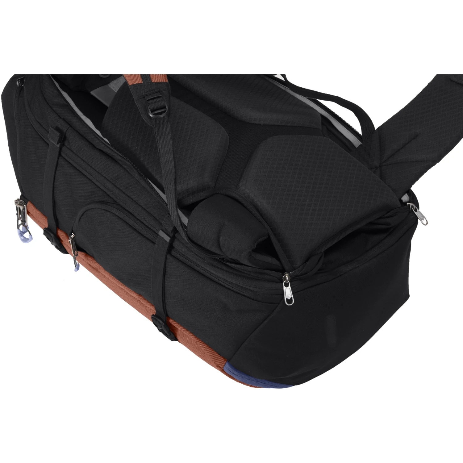 Voorvakken met rits voor reisdocumenten en persoonlijke reisbenodigdheden.