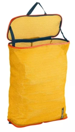 Deze organizer voor in uw koffer of tas komt uit de Pack-Itâ„¢ serie van Eagle Creek. Deze Reveal Laundry Sac is speciaal ontworpen voor de fanatieke reiziger. Deze opvouwbare wasmand past perfect in uw tas of koffer. Een plek om al uw vuile was te laten op reis. Opgevouwen past hij in een buideltje met rits, Vouw hem lang uit als u was heeft. Hij sluit zich af met een rits. Hij is gemaakt van meshgaas voor ventilatie en bevat twee handvaten om hem makkelijk te verplaatsen. Deze Laundry Sac is water afstotend en geschikt voor de wasmachine. Er is ruimte voor 48 L, hij is 16 cm lang, 17.5 cm breed en 4 cm hoog. Uitgevouwen is dit 52.5 cm lang, 36 cm breed en 16 cm hoog. Hij weegt 190 g.
