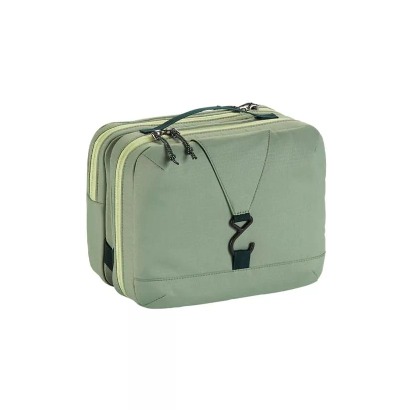 Deze organizer voor in uw koffer of tas komt uit de Pack-Itâ„¢ serie van Eagle Creek. Met deze toilettas houdt u al uw toiletspullen geordend bij de hand. Deze Reveal Trifold Toiletry Kit is voorzien van drie compartimenten, zodat u uw spullen gescheiden en geordend in kunt pakken. Het gewatteerde interieur bevat verschillende elastische- en mesh-gaas vakken. De toilettas kunt u plat neerleggen, of ophangen aan de stevige ophanghaak, net waar u behoefte aan heeft. De toiletttas heeft een grote capaciteit en is lichtgewicht, wasbaar, en beschikt over een handvat. Hij gaat lang mee en heeft veerkrachtige ritsen. Er is ruimte voor 9,5 L, hij is 25 cm lang, 20 cm breed en 14 cm hoog, en weegt 250 g.