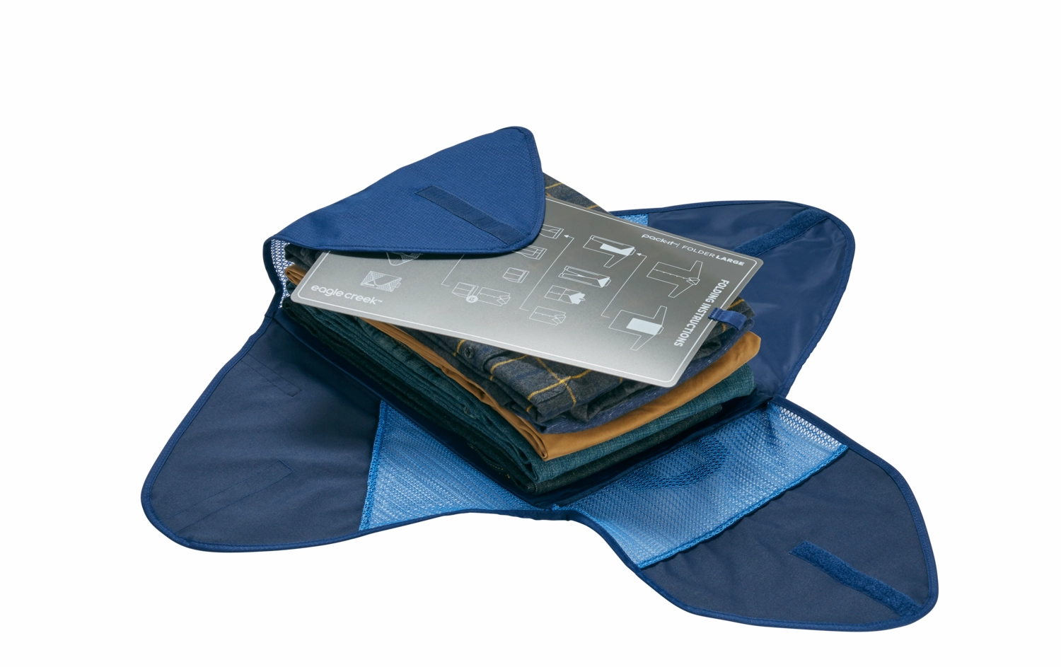 Met deze handige Pack-It reistas van Eagle Creek vouwt, stapelt en bergt u kleding eenvoudig op, zonder kreukels! De organiser is gemaakt van 100% gerecycled polyester en is waterbestendig. De tas is voorzien van verstelbare mesh flappen voor maximale compressie van kleding. Hierdoor kan uw kleding ondanks dat het strak is op geborgen toch goed ademen, zodat er geen nare geurtjes ontstaan. Met de Pack-it Garment Folder van Eagle Creek blijven kreukgevoelige overhemden en broeken strak en kreukvrij na een lange reis in de auto of vliegtuig. De organiser wordt geleverd met een bijbehorend bord met instructies over de beste vouwtechnieken.