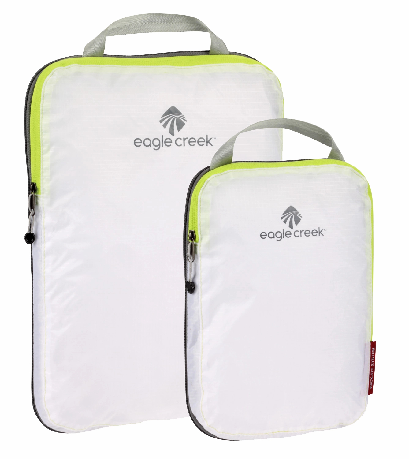 Met dit Pack-It Specter Compressie systeem van Eagle Creek kunt u licht en georganiseerd op reis. Deze S/M set heeft twee opbergtassen, één maat S en één maat M. Met deze extreem lichte opbergtassen kunt u kleding tot een zeer klein volume comprimeren. Dit maakt de tassen ideaal voor wanneer u met veel spullen op vakantie wilt gaan. De twee maten tassen stellen uw in staat om allerlei soorten spullen en kleding efficiënt op te bergen. De tas in maat S is uitermate geschikt voor het op orde houden van ondergoed, sokken of handschoenen, maar ook om overzicht te houden. De tas in maat M leent zich goed voor het verpakken van sweatshirts, broeken, shorts, ondershirts en lichte outdoorkleding.