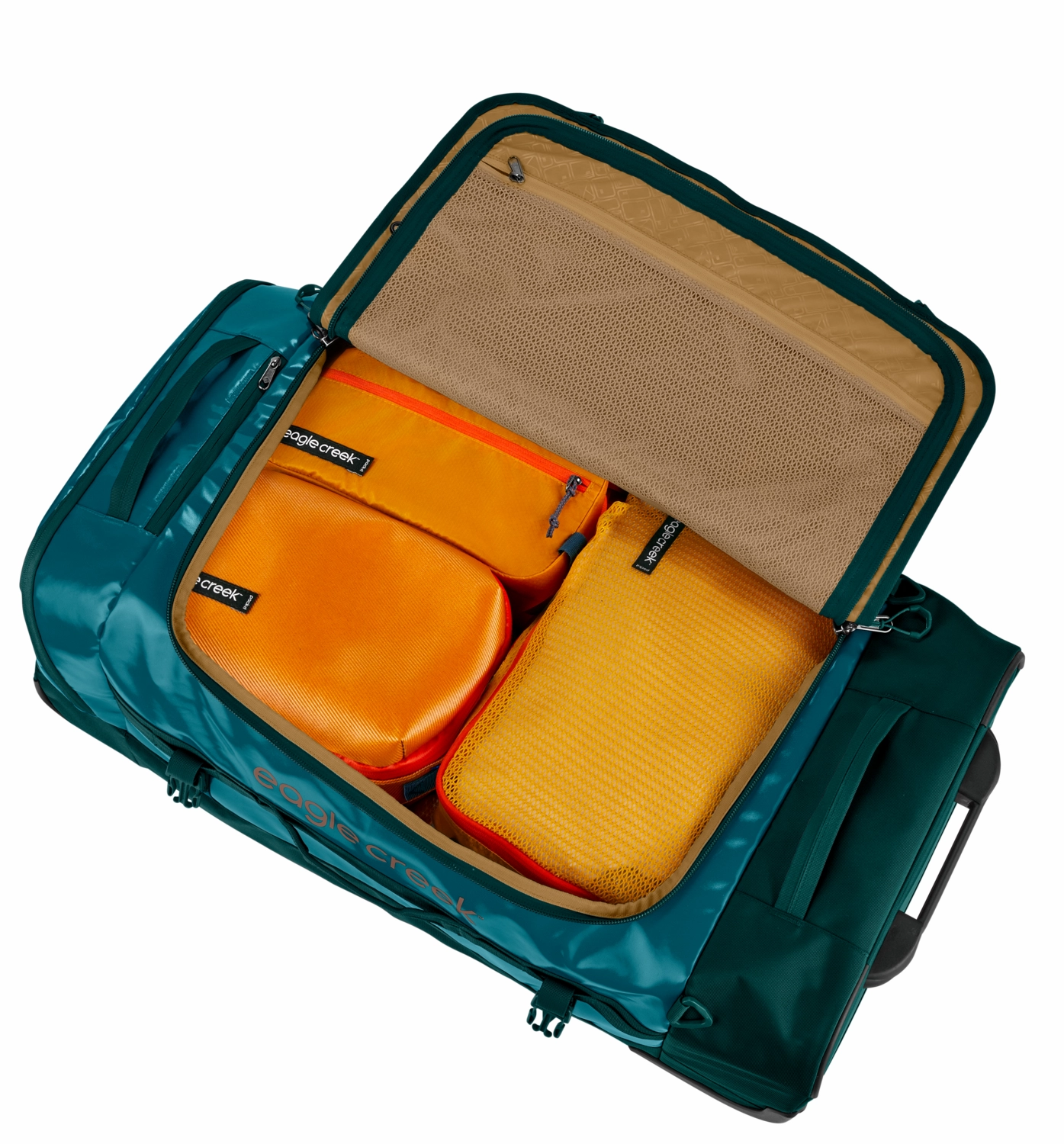 De Cargo Hauler Wheeled Duffel XT van Eagle Creek is perfect voor de sportieve reiziger. Deze fijne reistas biedt ultieme flexibiliteit doordat de tas op drie verschillende manieren gedragen kan worden. Is de Duffel zwaar bepakt? Dan rolt u de tas eenvoudig over het vliegveld met de twee geïntegreerde wielen. Draagt u de reiskoffer liever als rugtas op de rug? Dan kan dit door middel van de compressiebanden. De laatste optie is om de Duffel aan de gevoerde handgrepen aan de zijkant van de tas op te tillen. De reiskoffer is voorzien van een groot hoofdcompartiment en handige zijvakken. Dankzij de compressiebanden is de tas compact maar kan er ook een jas tussen worden geschoven. De ritsen zijn te vergrendelen met een slot zodat u veilig met deze tas op pad kunt. Deze zeer slijtvaste en waterafstotende tas van Eagle Creek gaat jaren met u mee op reis!
