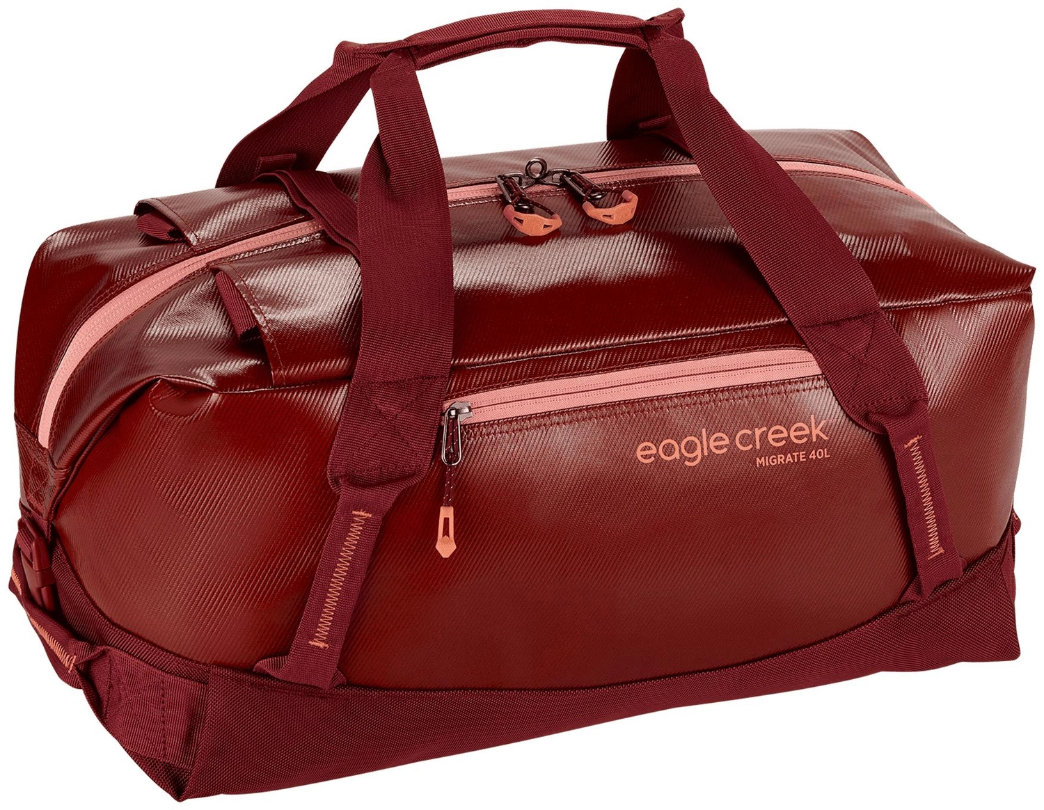Deze reistas komt uit de serie Migrate duffel van het merk Eagle Creek. De reistas heeft een uitgebreide capaciteit van 44 liter en bevat een grote opening met een interne stormflap. De zijgespen kunnen ontgrendeld worden om nog een extra 5 liter vrij te geven. Externe compressieriemen houden de uitrusting op hun plek en de versterkte handgrepen dienen ook als bevestiginglocaties. De bodem is gemaakt van kunststof van voorruiten uit stortplaatsen. Deze bevat een naadloze bodembadconstructie zodat wanneer u de tas in een plas neerzet er geen water binnen komt. De reistas is om te toveren tot een backpack door de rugzakriemen los te maken. De tas is voorzien van een voorvak met ritssluiting en is compact op te vouwen voor opslag. De ritssluiting bevat grote lussen zodat deze ook met handschoenen aan gemakkelijk open gemaakt kan worden.