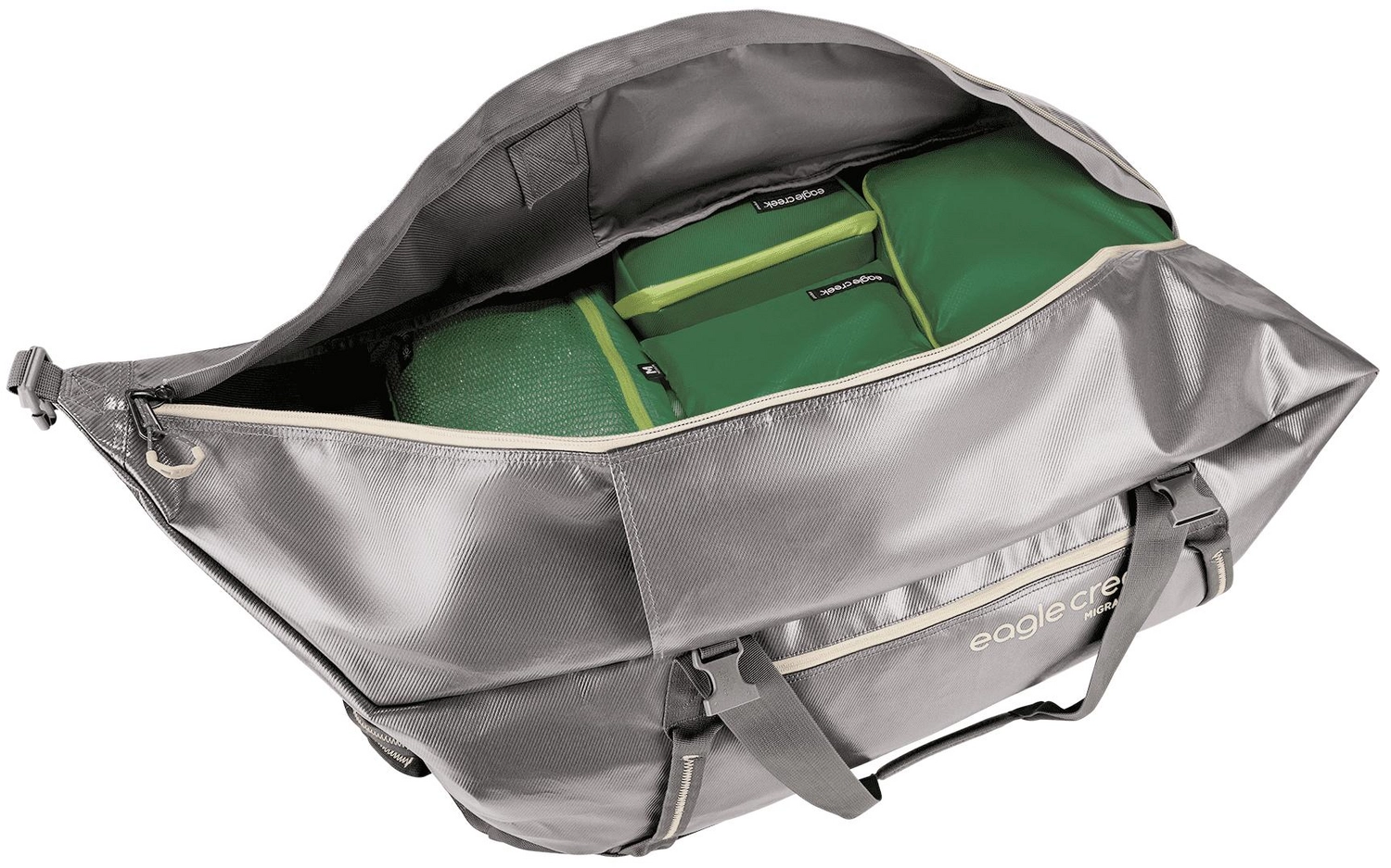 Deze reistas komt uit de serie Migrate Wheeled Duffel van het merk Eagle Creek. De reistas heeft een capaciteit van 130 liter en bevat een grote opening met een interne stormflap. Externe compressieriemen houden de uitrusting op hun plek en de versterkte handgrepen dienen ook als bevestiginglocaties. Ze bevatten een juksysteem voor maximale belasting. De bodem is gemaakt van kunststof van voorruiten uit stortplaatsen. Deze bevat een naadloze bodembadconstructie zodat wanneer u de tas in een plas neerzet er geen water binnen komt. De tas is ook bestand tegen slijtage en water en is gemakkelijk schoon te maken. De reistas bevat wielen in een heavy-duty wielkast zodat ze minimale inspanning nodig hebben, ook als de tas zwaar gevuld is. Ook is de tas om te toveren tot een backpack door de rugzakriemen los te maken. De tas is voorzien van een voorvak met ritssluiting. De ritssluiting bevat grote lussen zodat deze ook met handschoenen aan gemakkelijk open gemaakt kan worden.